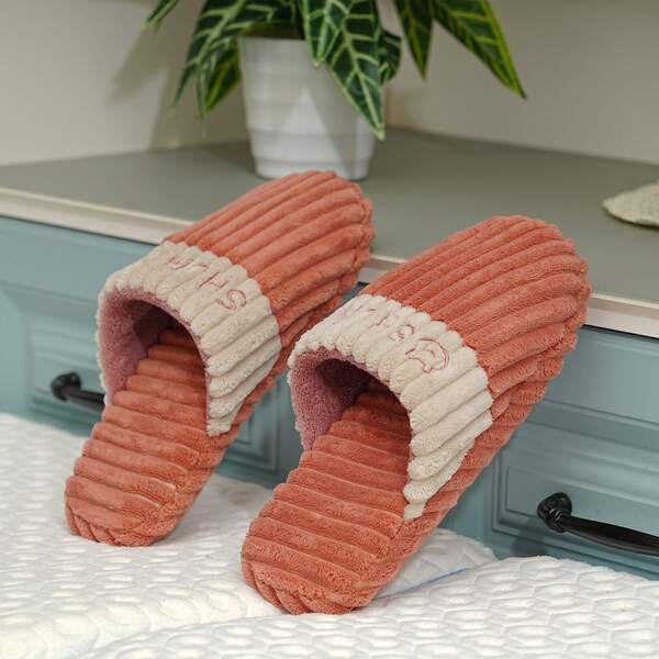 Couple's Simple Letter Design Fashionable Autumn/winter Warm Anti-slip Home Slippers