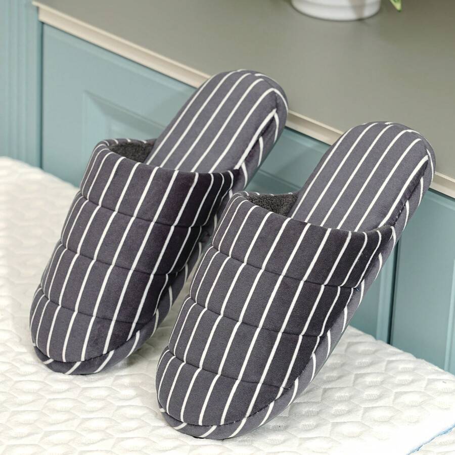 Couple's Vertical Stripe Round Toe Anti-slip Warm Home Slippers For Autumn/winter