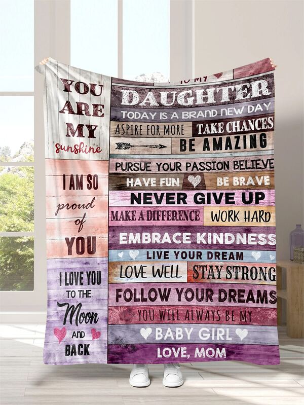 Creative Alphabet Printed Flannel Soft Sofa Blanket, Perfect For My Daughter