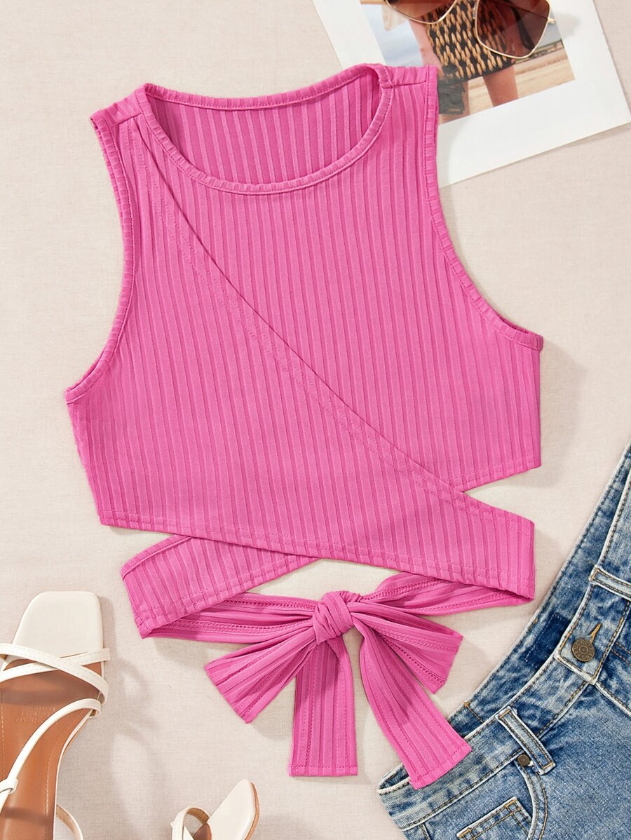 Criss Cross Tie Back Crop Tank Top