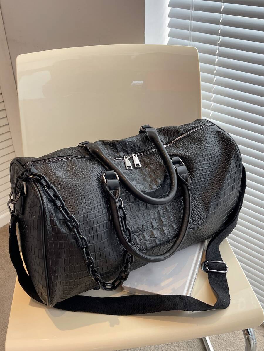 Crocodile Embossed Chain Decor Duffel BagTravel BagholidayLuggage BagWeekend BagOvernight BagLarge Capacity