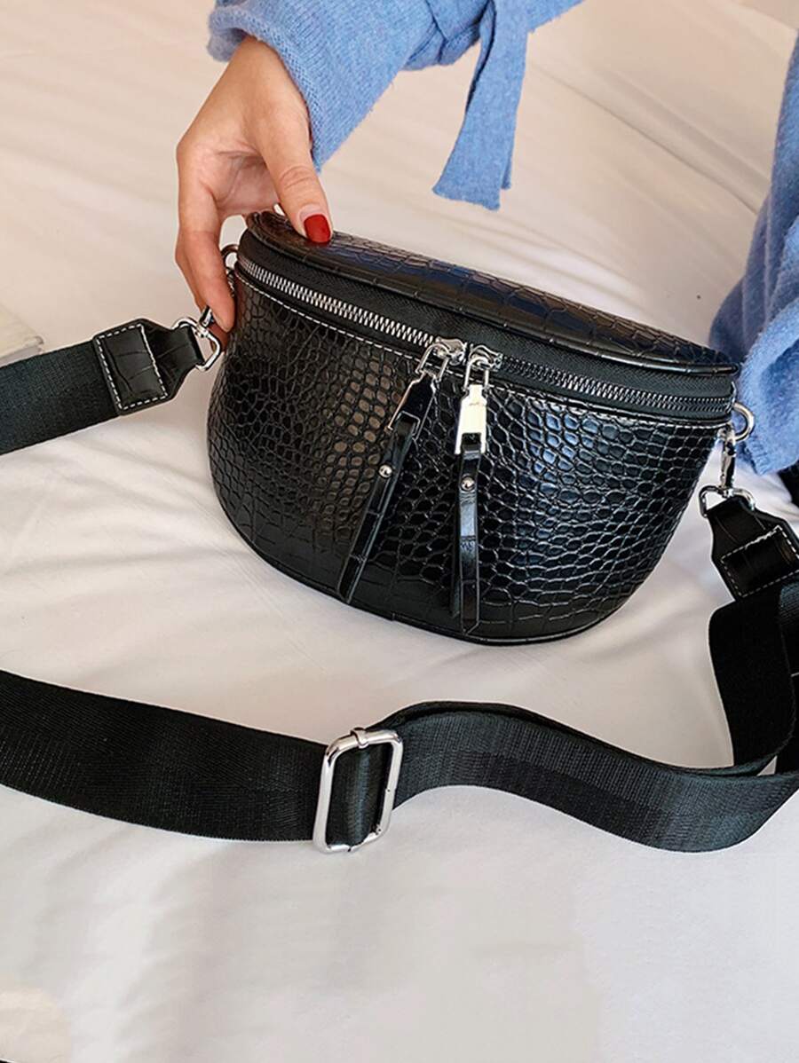 Crocodile Embossed Saddle Bag