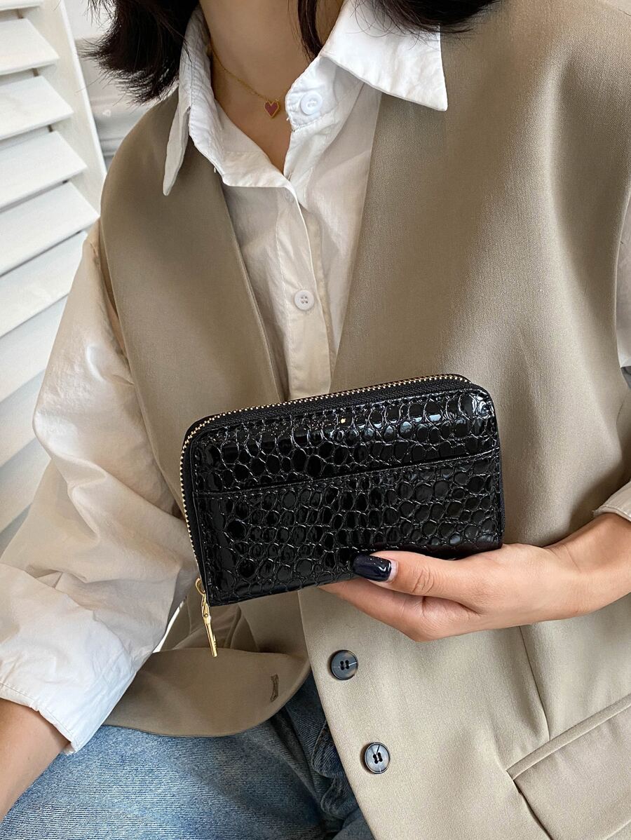 Crocodile Embossed Zipper Long Wallet Slim Portable,Money,Cash White-Collar Workers,For Female,For Women College,Work, Business, Commute,Office,For Anniversary,For Lover,For Birthday Gift,On Valentine Day Gift, Gift