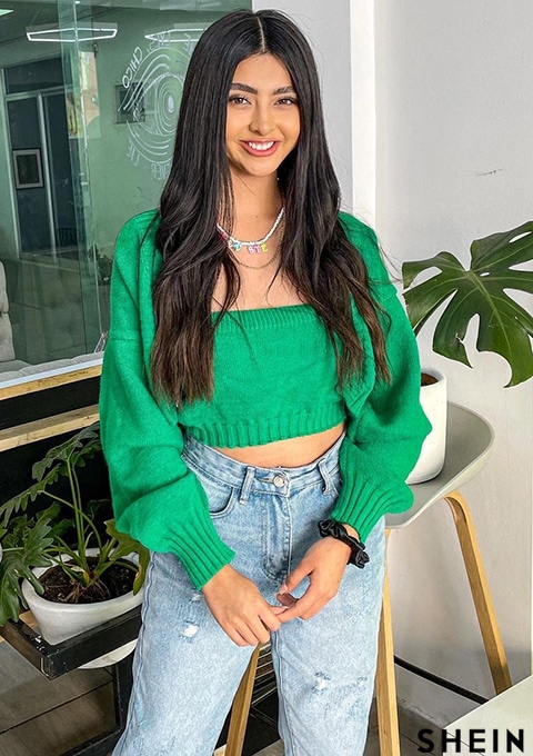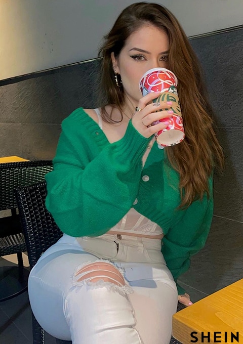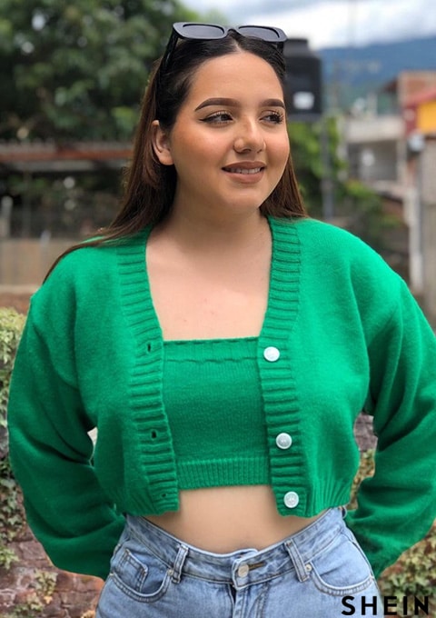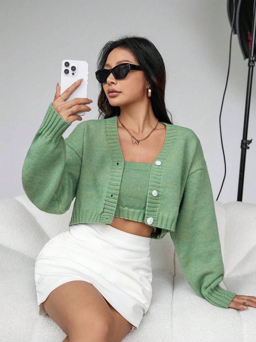 SHEIN Essnce Crop Knit Open Front Drop Shoulder Cardigan And Strapless Knitted Top