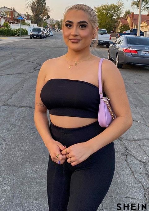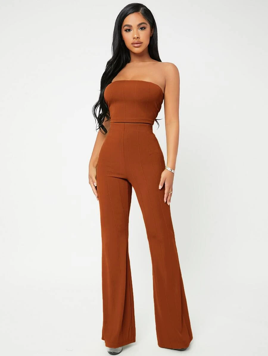 SHEIN SXY Crop Tube Top & Flare Leg Pants Set