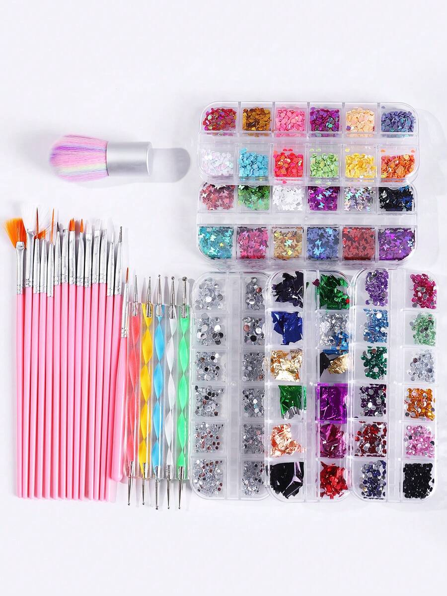 Cross Border Set, Gold Foil Nail Tool Set, Full Set Of Nail Paint Pens, Nail Brushes, Butterfly Sequin Long Pointed Diamond Pen, DIY Nail Water Diamond Set, 26 Pieces
