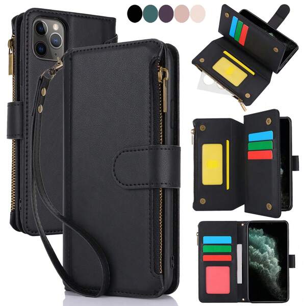 Crossbody Wallet Phone Case For IPhone 15 14 13 12 11 Pro Max XR XS Max 7 8 Plus 12 Mini 13 Mini ,Credit Card Holder Faux Leather Phone Case With Short Lanyard Zipper Flip Double Magnetic Clasp And Durable Shockproof Cover For S24 S23 S22 Ultra S24 S23 S22 Plus S23 FE Note 20 Ultra A14 A53 A54
