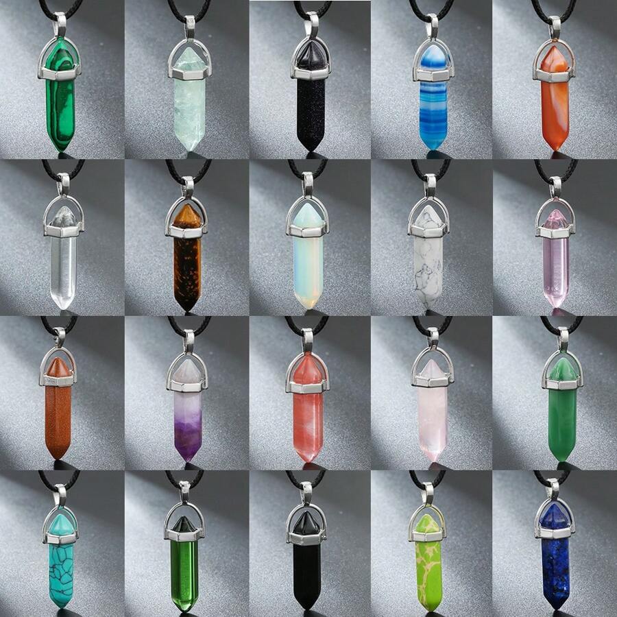 Crystal Necklace Hexagonal Gemstone Necklace Chakra Pendant Necklace