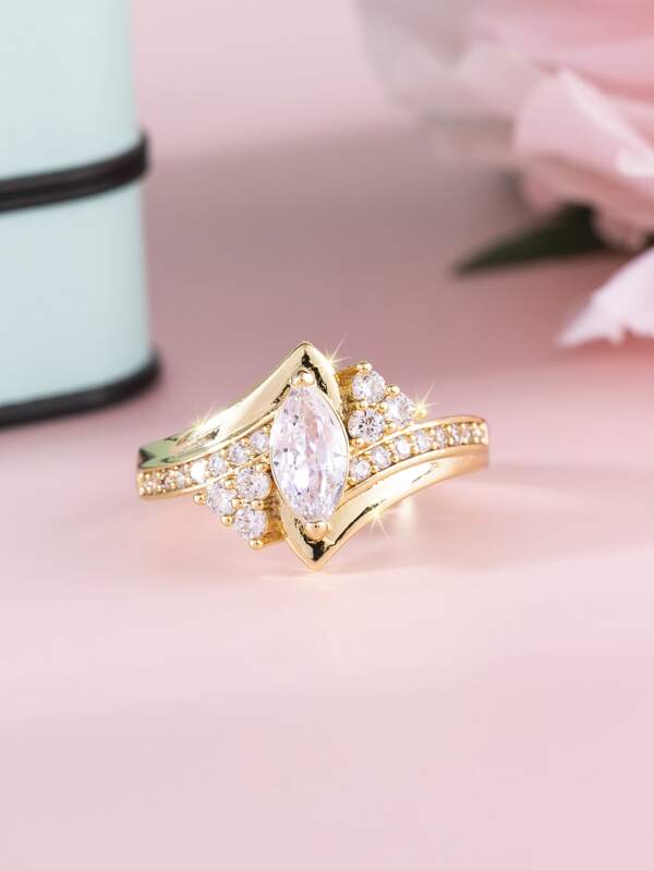 Cubic Zirconia Decor Ring Fashion Women Marquise Ring Bridal Wedding Fine Jewelry Daily Casual Ring