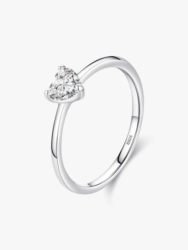 Cubic Zirconia Heart Decor Silver Wedding Band