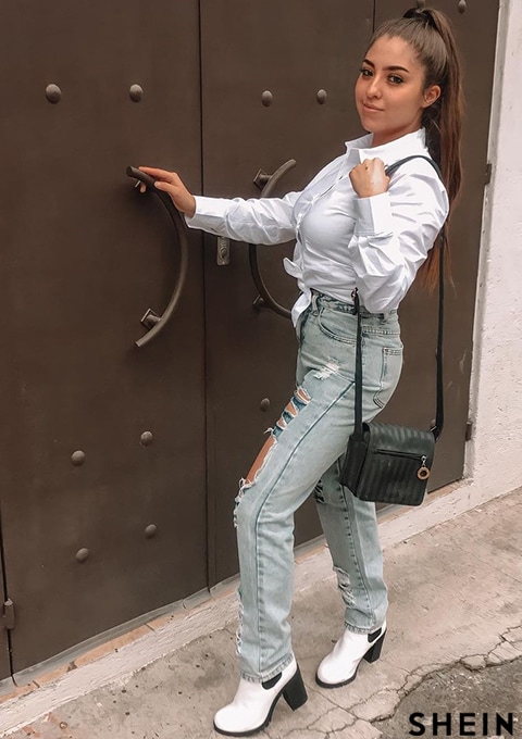 SHEIN Mulvari Curved Hem Long Sleeve Shirt