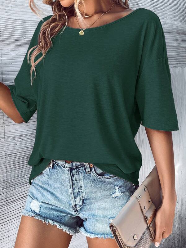 SHEIN LUNE Cut Out Back Batwing Sleeve Tee