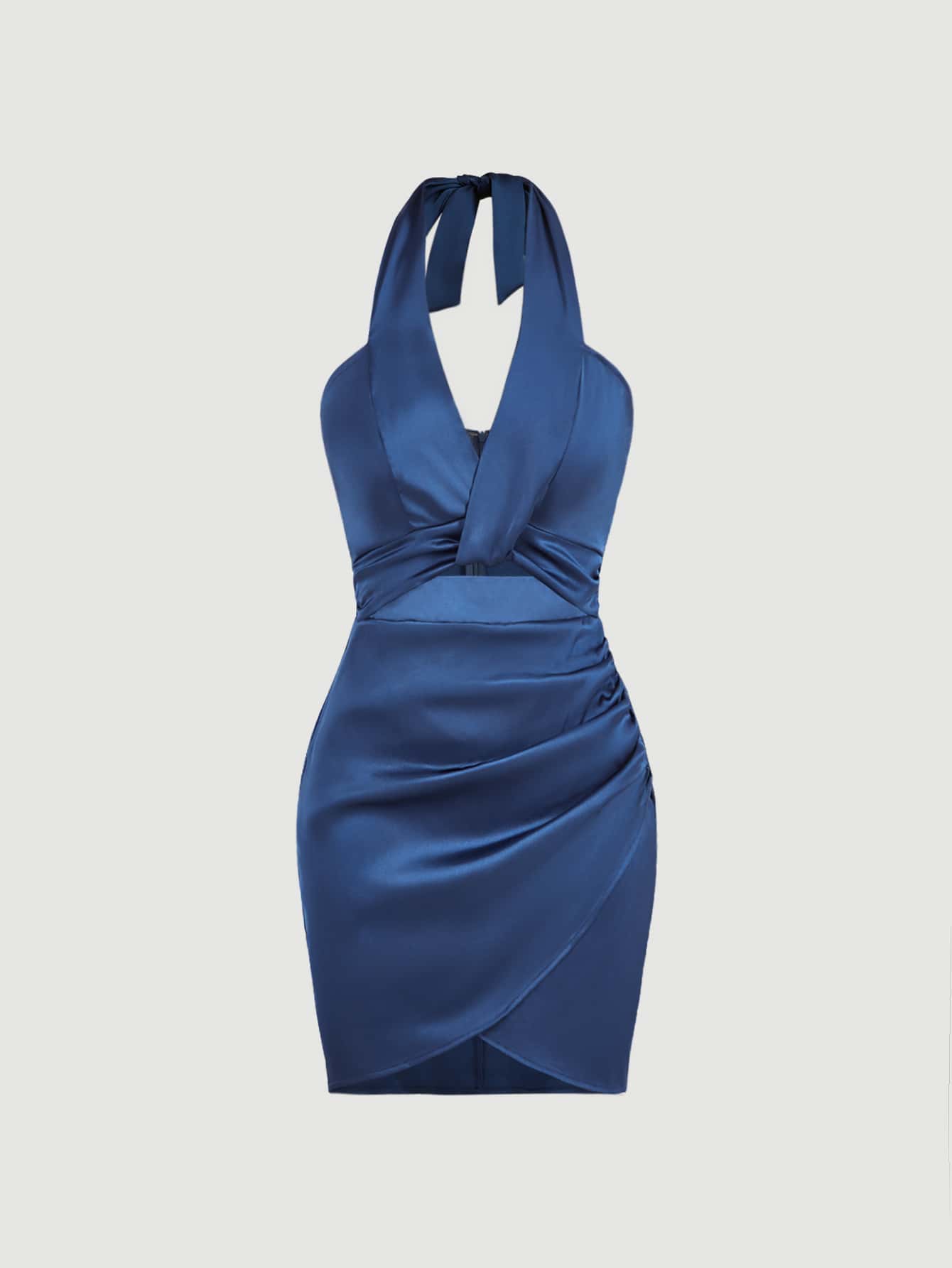 SHEIN BAE Cut Out Backless Ruched Wrap Hem Halter Dress