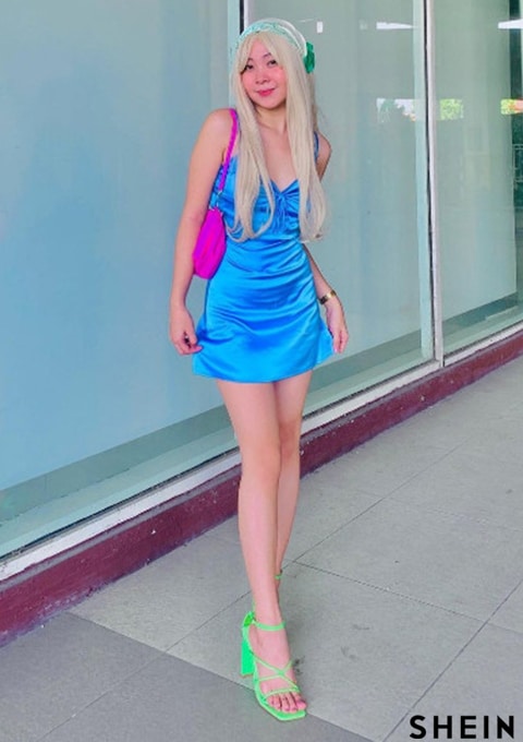 SHEIN BAE Cut Out Backless Tie Front Ruched Bust Satin Cami Dress