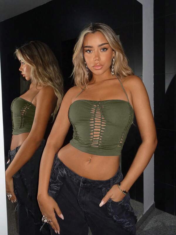 SHEIN ICON Cut Out Front Crop Halter Top