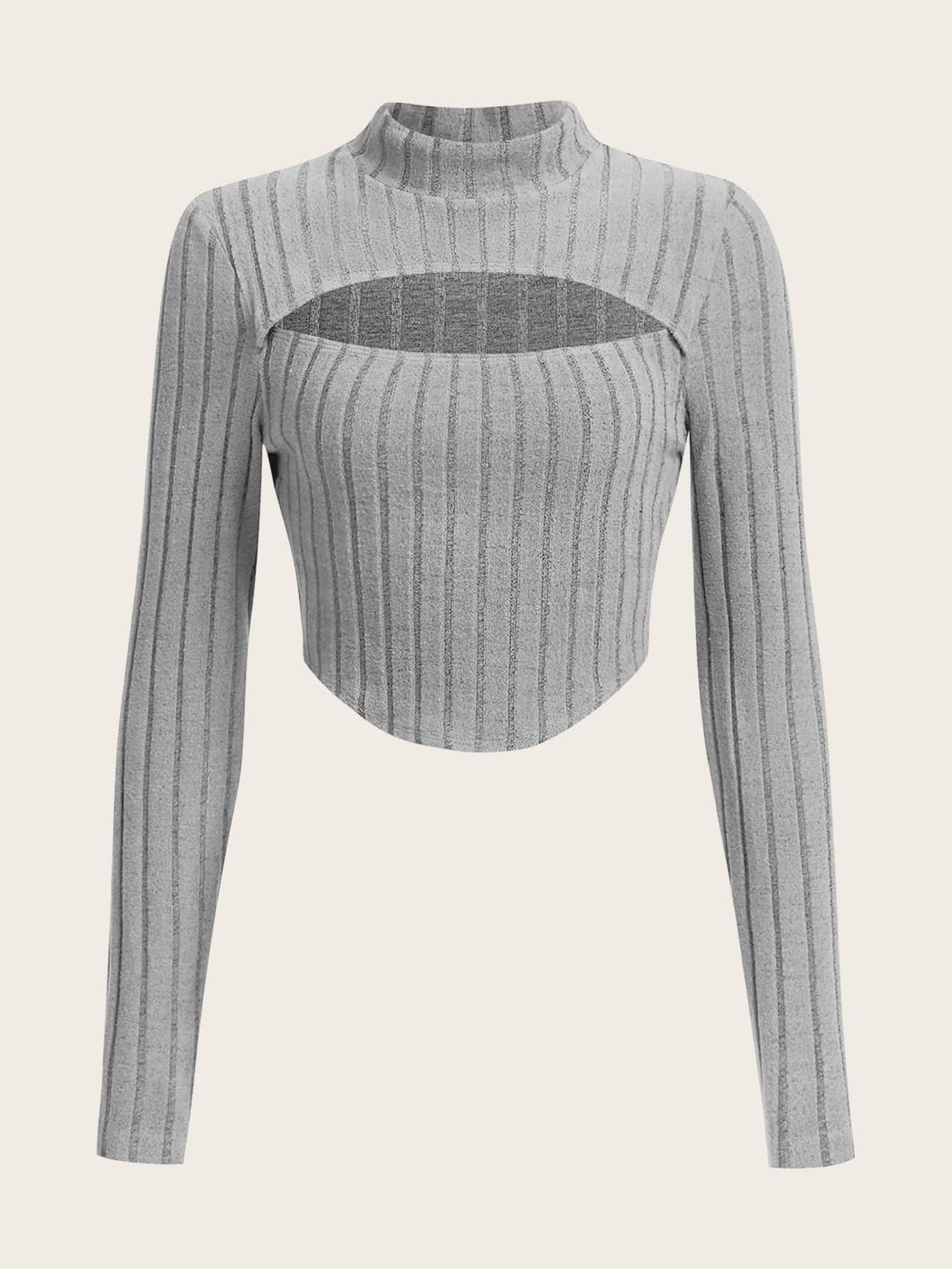 SHEIN Coolane Cut Out Front Mock Neck Crop Tee
