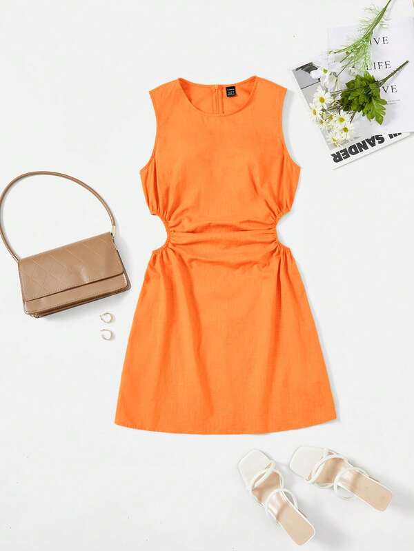 SHEIN EZwear Cut Out Waist Ruched Side Dress