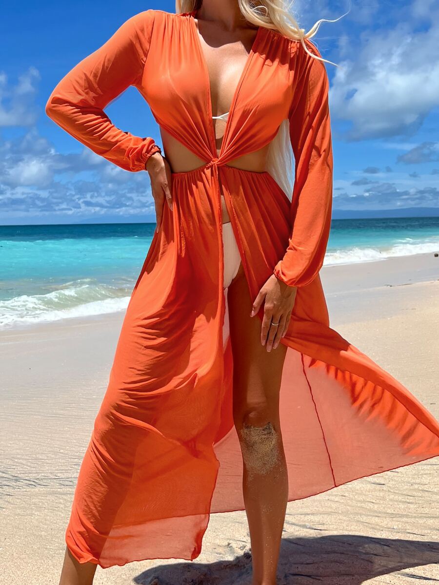 SHEIN Swim Vcay Cut Out Waist Split Thigh Mesh Cover Up