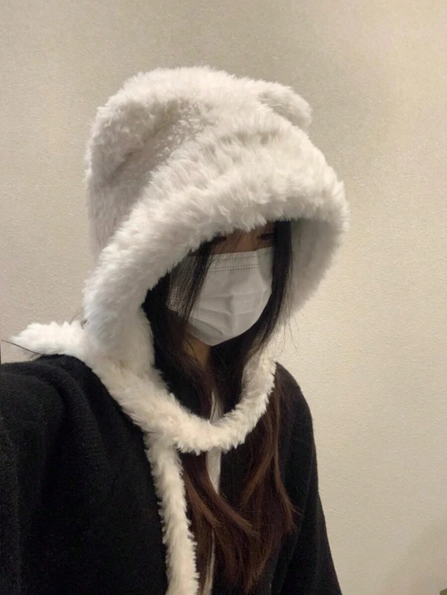 Cute Bear Ear Fluffy Hat For Women, Autumn And Winter, Face-Shaping