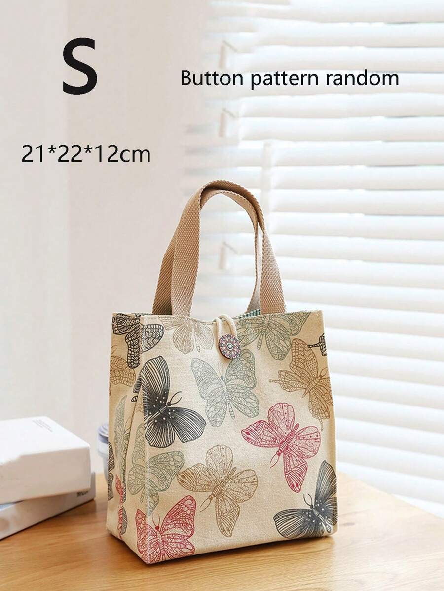 Cute Butterfly Lunch Bag - Random Pattern (Button Pattern Random), Insulated Lunch Tote, Work School Travel Portable Picnic Bag, Vintage Pattern Organizer Tote, Zipper Portable Lunch Bag, Lightweight Satchel, Insulated Tote with Patch Pocket for Work and school meal preparation