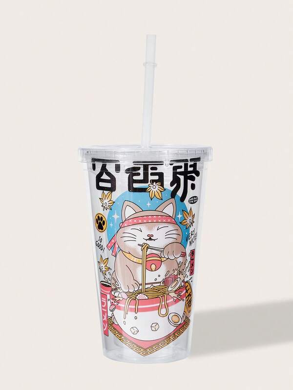 Sober Artwerk Cute Osaka Cat Noodle Flat Cup
