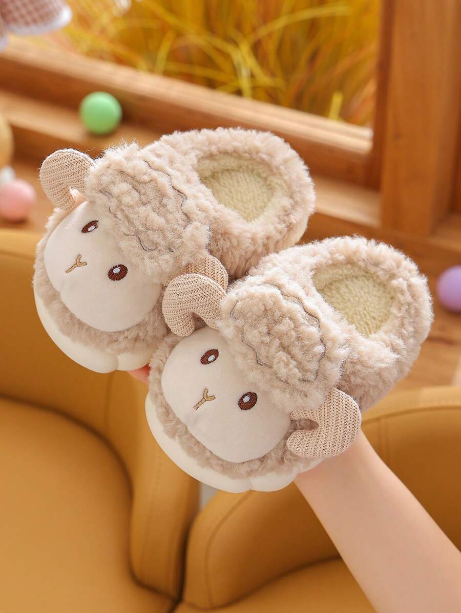 Cute Sheep Design Girls' Indoor Winter Warm Slippers, Non-slip Cartoon Children's Comfortable Shoes