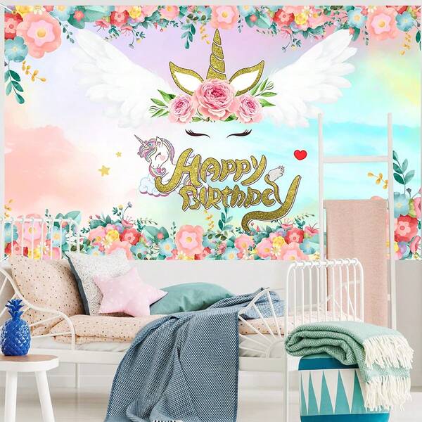 Cute Unicorn Birthday Decorations, Happy Birthday Decorations,Banner Birthday Party Supplies Bday Decor With Table Cover