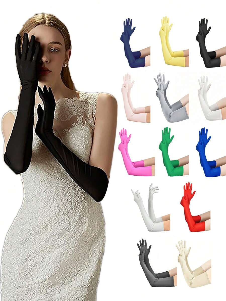 D EXCEED 1/2Pcs 1920s Long Opera Party Gloves For Women 20s Satin Gloves Costumes Elbow Length Bridal Evening Dress Accessory For Costume Party Engagement And Wedding Party