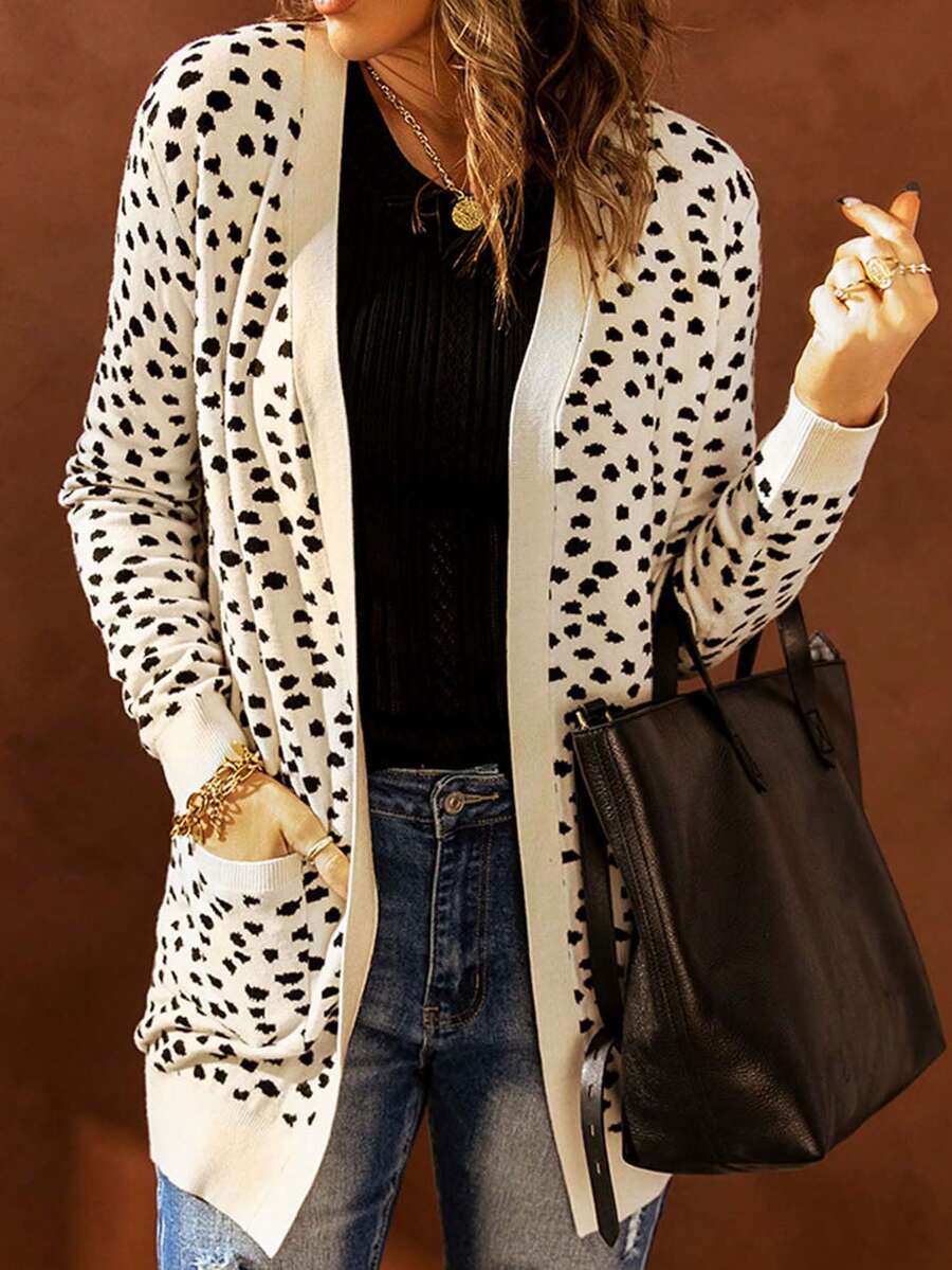 DOKOTOO Dalmatian Print Dual Pocket Open Front Coat