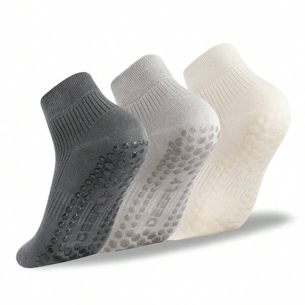 Deefly3 2 Pairs Glue Dots Low Cut Short Socks For Men, Solid Color Anti-Slip Yoga Socks For Home, Hospital, Fitness, Ballet, Pilates