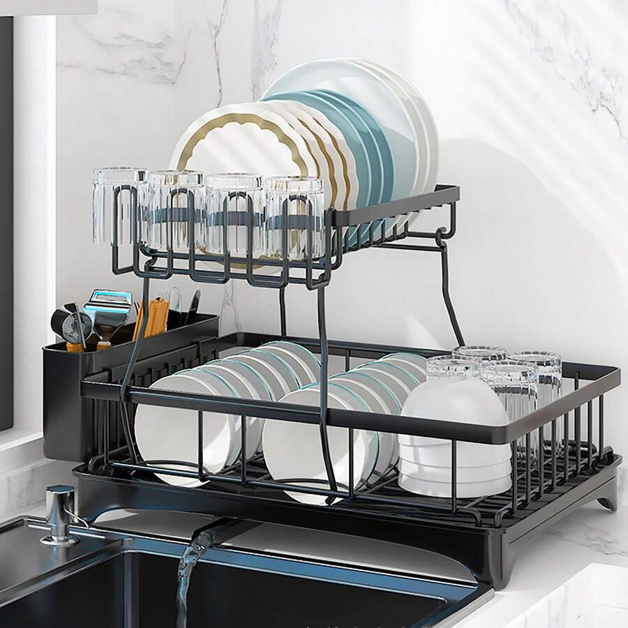 • Dish Drying Rack, 2-Tiers Dish Rack Over Sink, Large Stainless Steel Kitchen Dish Drying Rack, Detachable Large Capacity Dish Drainer Organizer