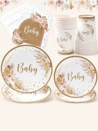 30/60pcs Boho Style Baby Shower Party Plates, Suitable For 25-60 Guests, Also Suitable For Wedding Catering, Birthday Party. Ice Cream Plates, Beverage Plates, Beach Party Tableware, Thick Tableware Set. Ice Cream Boxes, Ice Trays, Cups, Ice Cream Cups. Reed Flower Paper Plates, Unisex Baby Party Cup Design, Gifts For Girls And Kids, Suitable For Kitchen, Living Room, Dining Room And Other Themed Party Supplies. #8 Bestseller