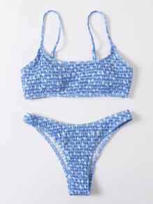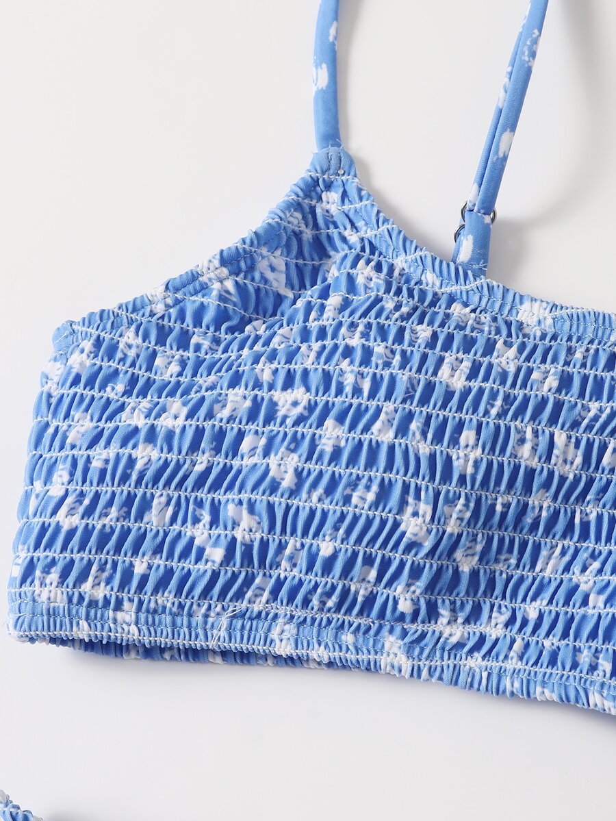 SHEIN Swim Mod Ditsy Floral Bikini Set Smocked Cami Top & High Cut Bottom 2 Piece Swimsuit