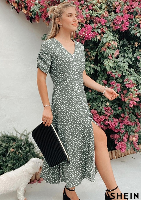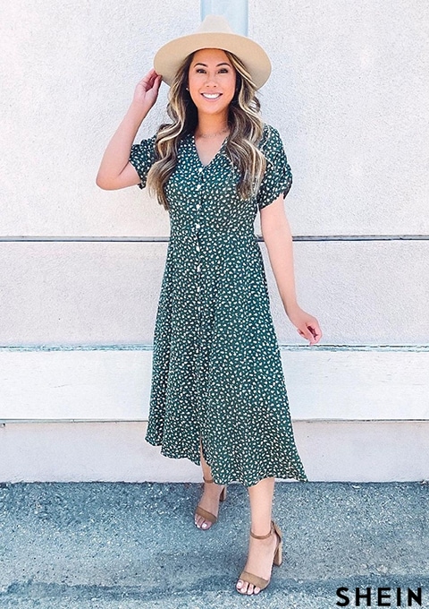 SHEIN Mulvari Ditsy Floral Button Through Dress