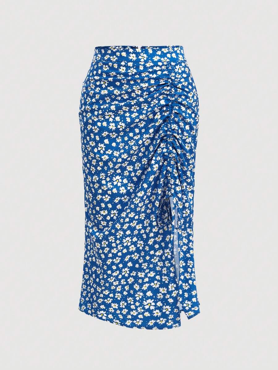 SHEIN MOD Ditsy Floral Print Drawstring Split Thigh Skirt