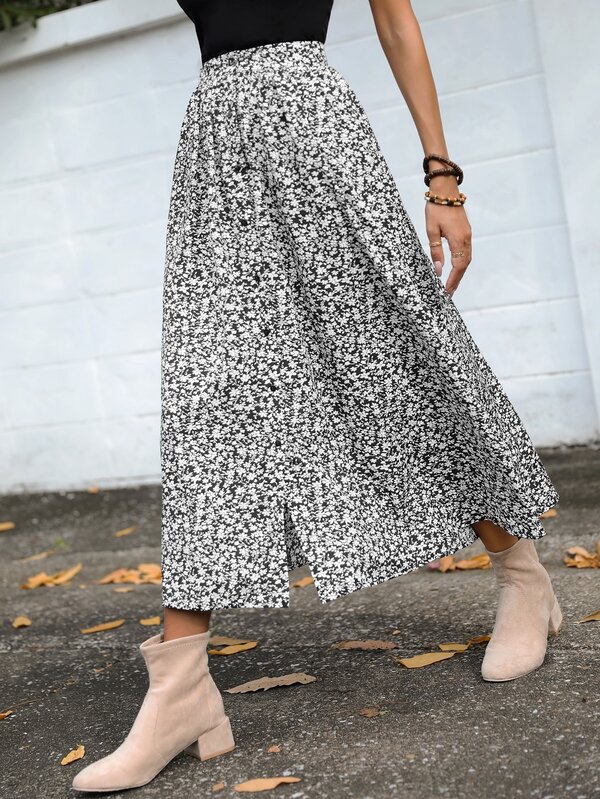SHEIN Clasi Ditsy Floral Print Elastic Waist Skirt