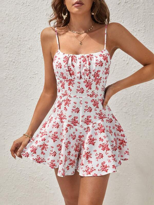 SHEIN WYWH Ditsy Floral Print Ruched Bust Cami Romper