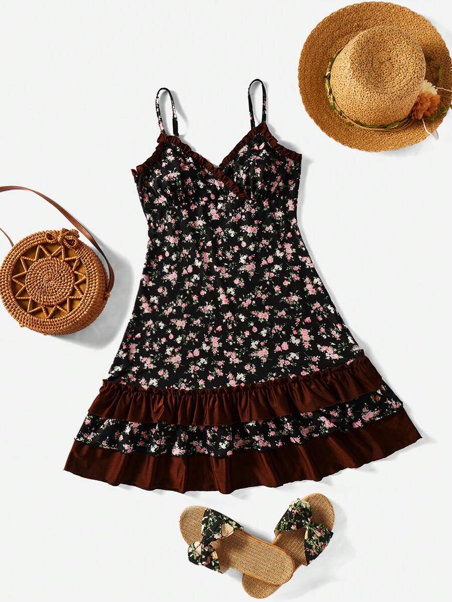 SHEIN WYWH Ditsy Floral Print Ruffle Hem Cami Dress