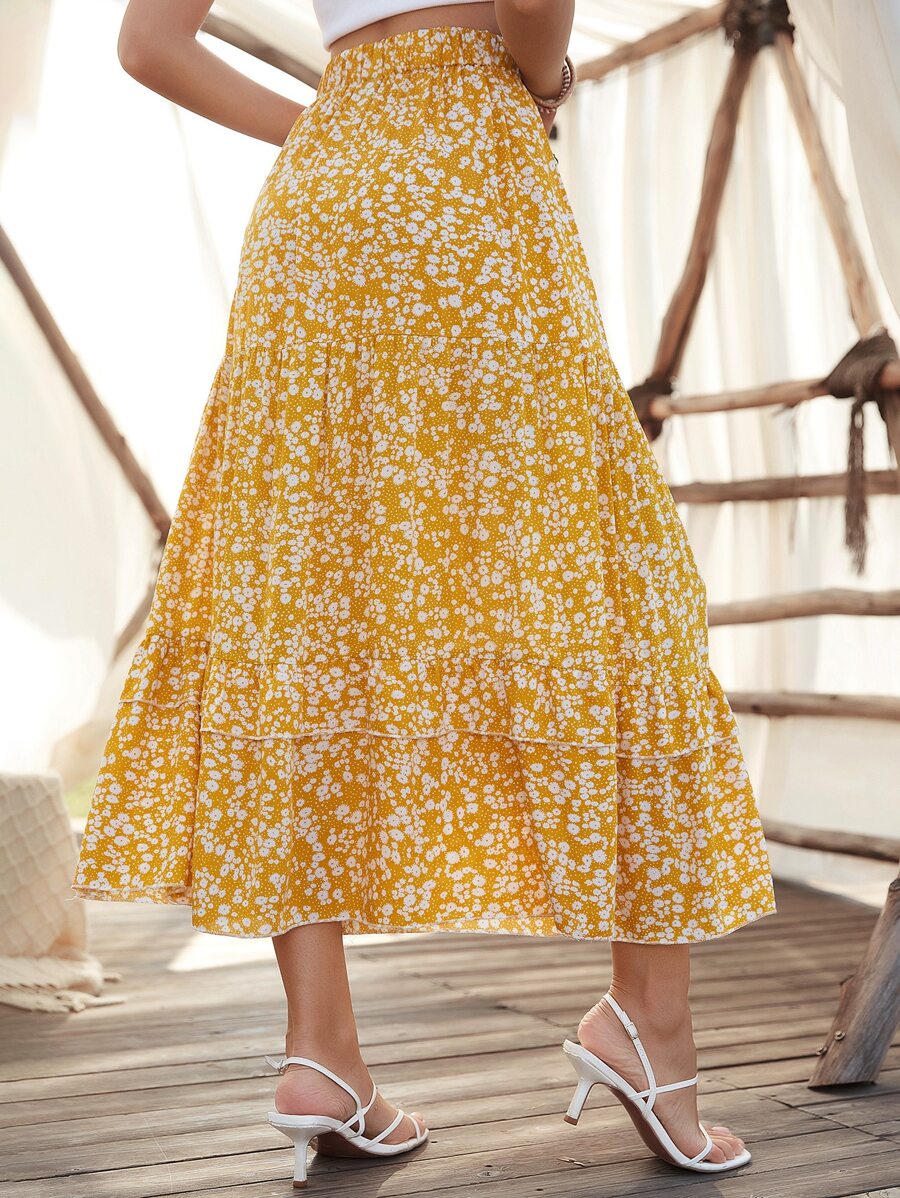 SHEIN VCAY Ditsy Floral Ruffle Hem Skirt
