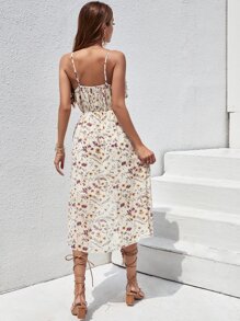 SHEIN VCAY Ditsy Floral Ruffle Split Cami Dress