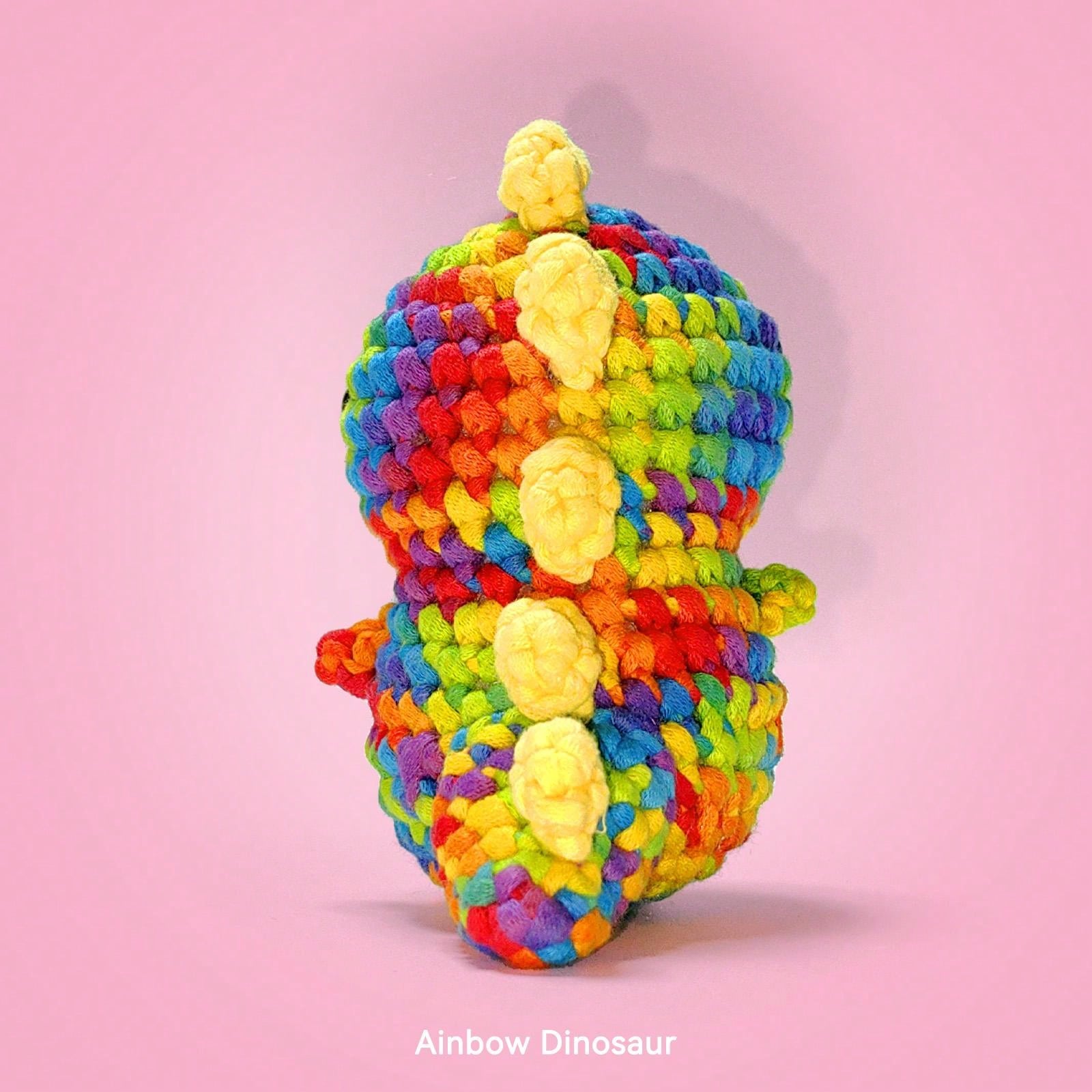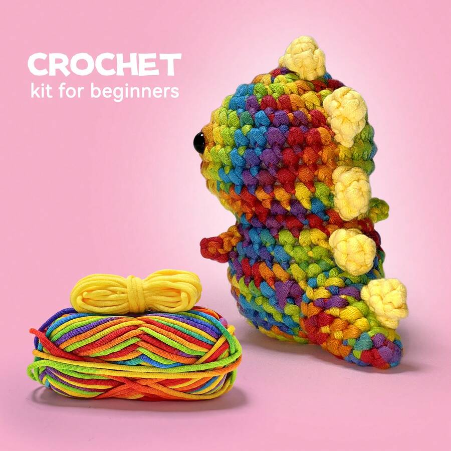 Diy Craft Kit For Beginners- Rainbow Dinosaur Amigurumi Crochet Set For Making Desktop Ornament, Handmade Art Doll, Bag Accessory, Etc. With Step-By-Step Video Tutorial In English, Us Voiceover, English Instruction Manual, Crochet Hook, Stitch Markers, And Other Tools & Accessories (Colors Random)