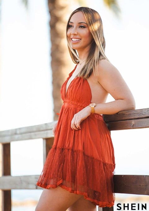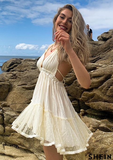SHEIN VCAY Dobby Mesh Open Back Halter Dress