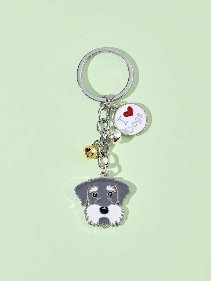 Dog Head & Bell Charm Keychain