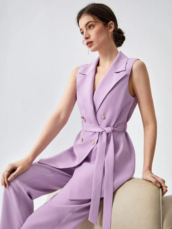 SHEIN BIZwear Double Breasted Belted Vest Blazer Workwear