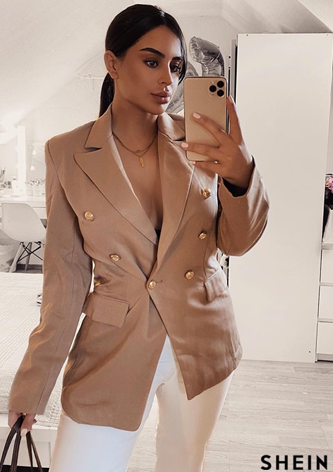 SHEIN Privé Double Breasted Lapel Collar Blazer
