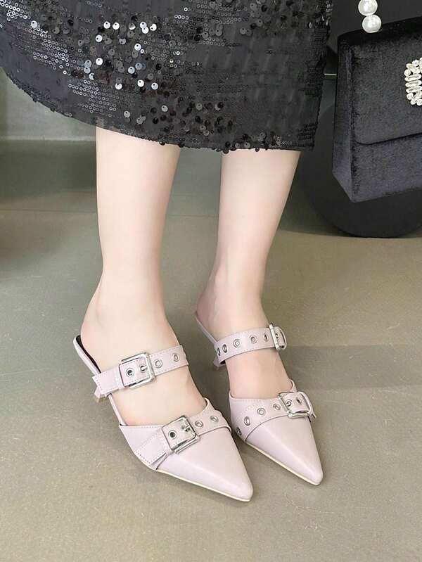 Double Buckle Pointed Toe Half Slippers Women'S Outerwear