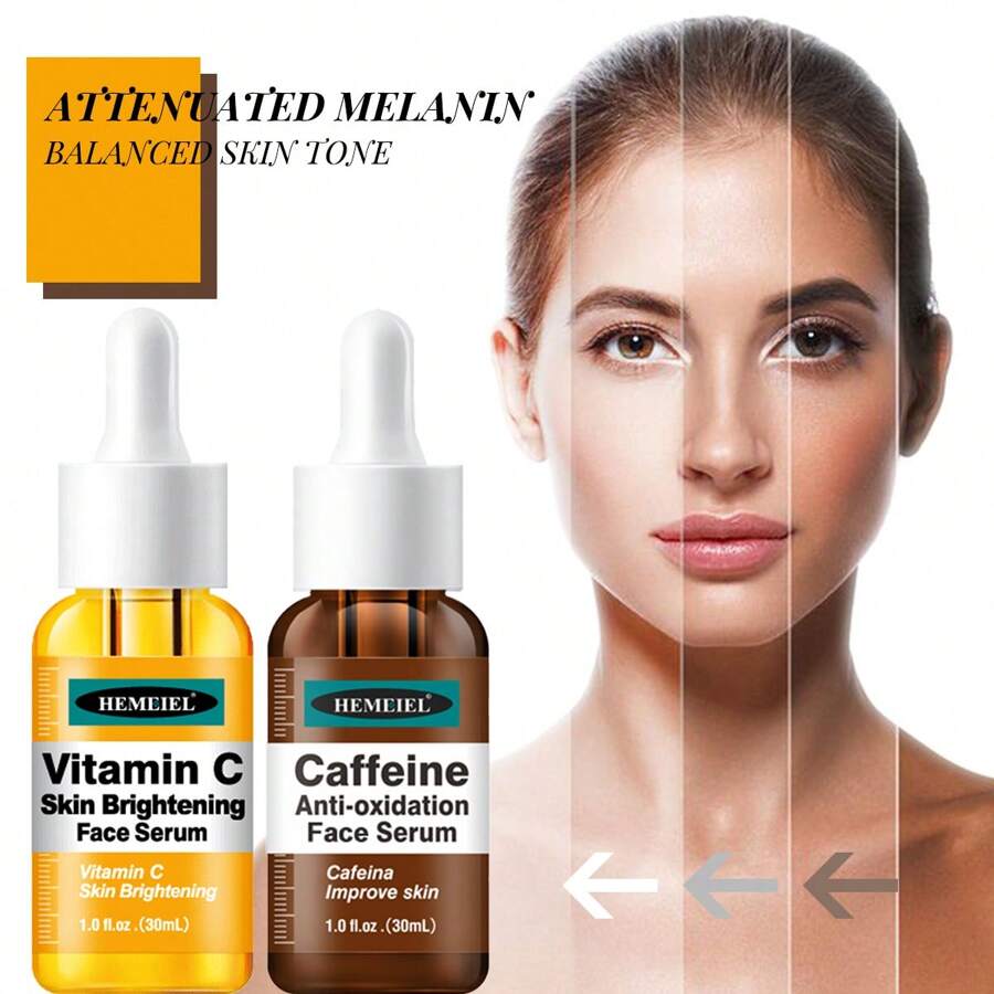 Double C (Vitamin C & Caffeine)Brightening Serum for Dark Spot 2pcs,Firming Hydrating for Skin Care, for Face and Neck, Women and Men, Day and Nigh