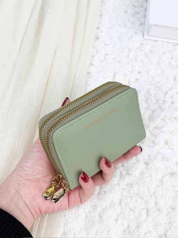 Double Zipper,Versatile Coin Wallet,Letter Graphic Card Holder Multi-Card Card Organizer For Storage Credit Cards School Supplies For School Dorm Room