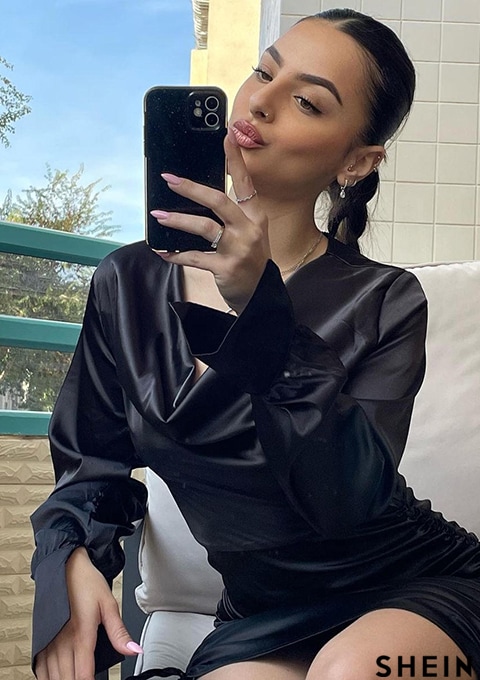 SHEIN BAE Draped Collar Drawstring Side Satin Bodycon Dress
