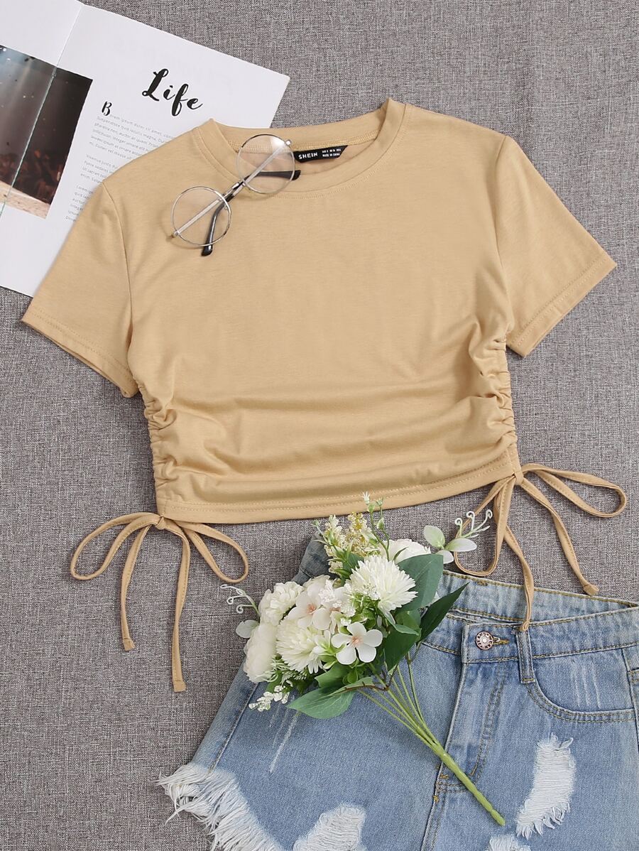 SHEIN Unity Drawstring Ruched Solid Crop Tee
